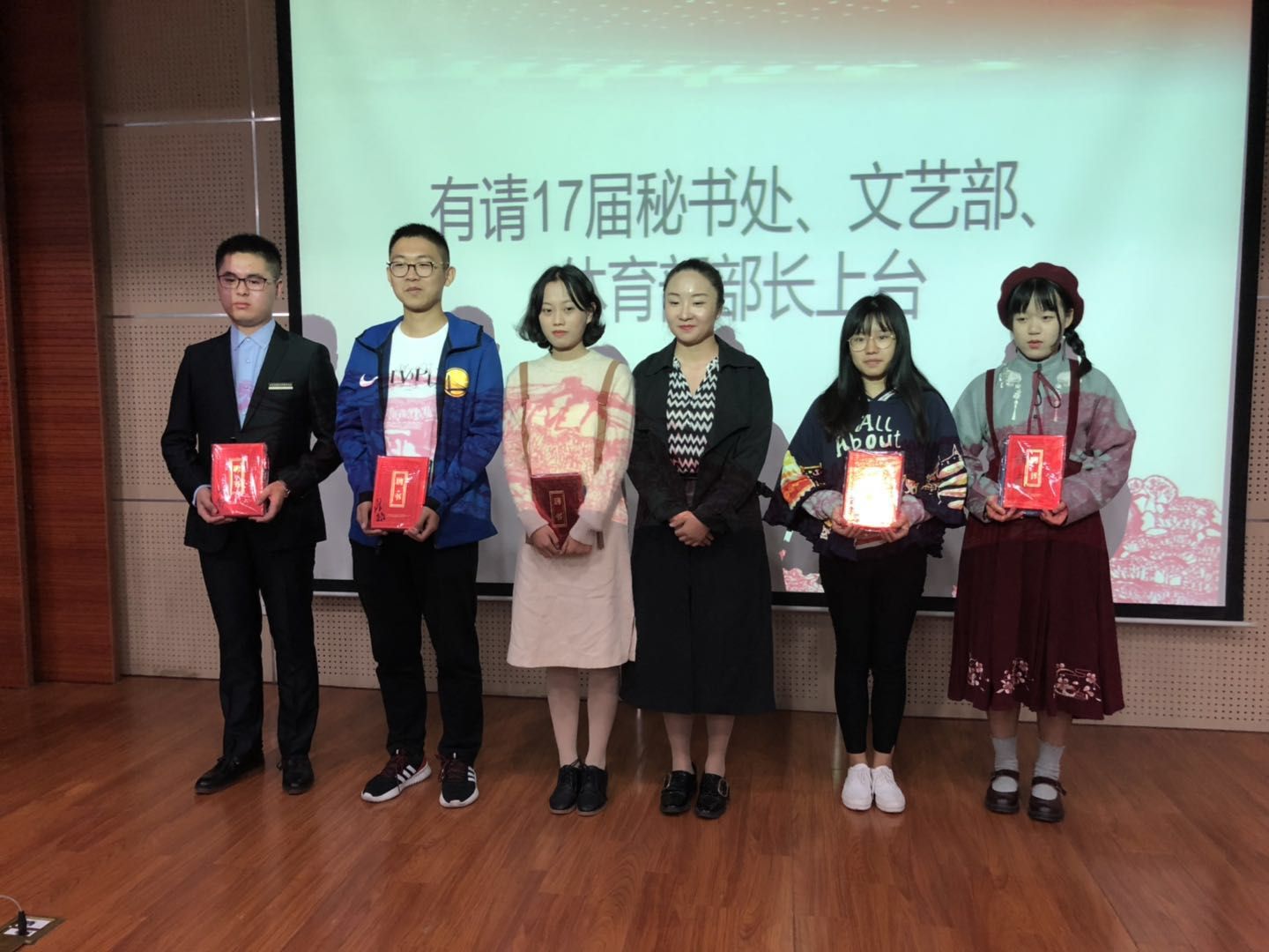 伴随着共青团团歌在,大会在庄严肃穆的氛围中正式开始。第一项,2017-2018级团学会干部代表,学生会主席陈晋鹏做上年度工作总结。第二项,2018-2019级团学会学生干部代表,作本年度工作部署及展望。新学年团学会全体成员要立足根本,不忘初心,注重细节,敢想、敢做、敢创新。第三项,为2017-2018级学生干部颁发了荣誉证书,对为团工委学生会辛勤付出、踏实奉献的干部表示衷心的感谢。第四项,各部门学生代表做本学年部门展望。最后,电信系团工委书记李璐老师对团学会成员提出要求和希望。希望同学们牢记电信系团学会宗旨,要注重自身综合素质的培养和提高,树立“以服务为本”的工作理念,以身作则,摒弃庸俗习气。李璐老师着重强调,团学干部一定不能有阶级意识。