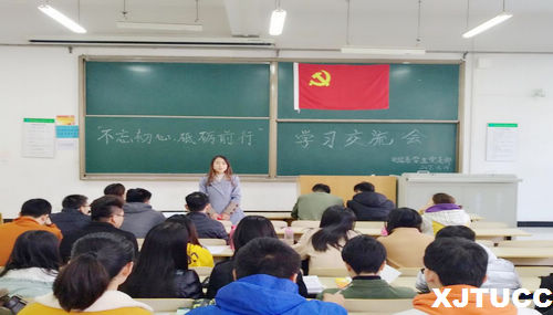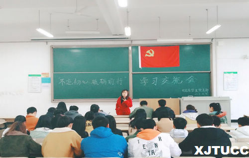 为深入学习领会党的十九大精神, 11月24日下午,电信系学生党支部在E100教室组织召开了以“不忘初心,砥砺前行”为主题的学习交流会,学生党员结合自身实际情况,就自己关心的话题分享学习心得,并表达了在今后学习中要努力的方向及目标。参加此次学习交流会的有电信系学生党支部书记王姣老师、辅导员张敏娜老师及电信系全体学生党员。