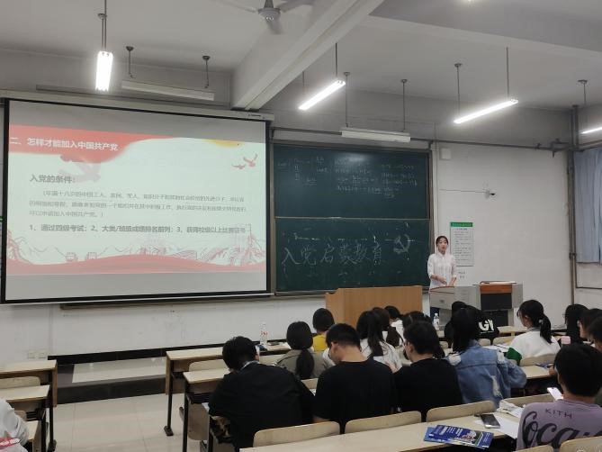 最后,学生党员雷嘉睿同志从端正入党动机、如何撰写入党申请书、发展党员程序等方面向同学们详细讲述了怎样才能加入中国共产党。雷嘉睿同志鼓励2022级新同学踊跃递交入党申请书,在思想上、行动上积极向党组织靠拢,争取早日成为一名光荣的中国共产党员。