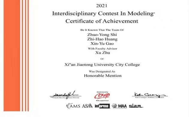 石卓勇和队友在美国大学生数学建模竞赛中取得二等奖