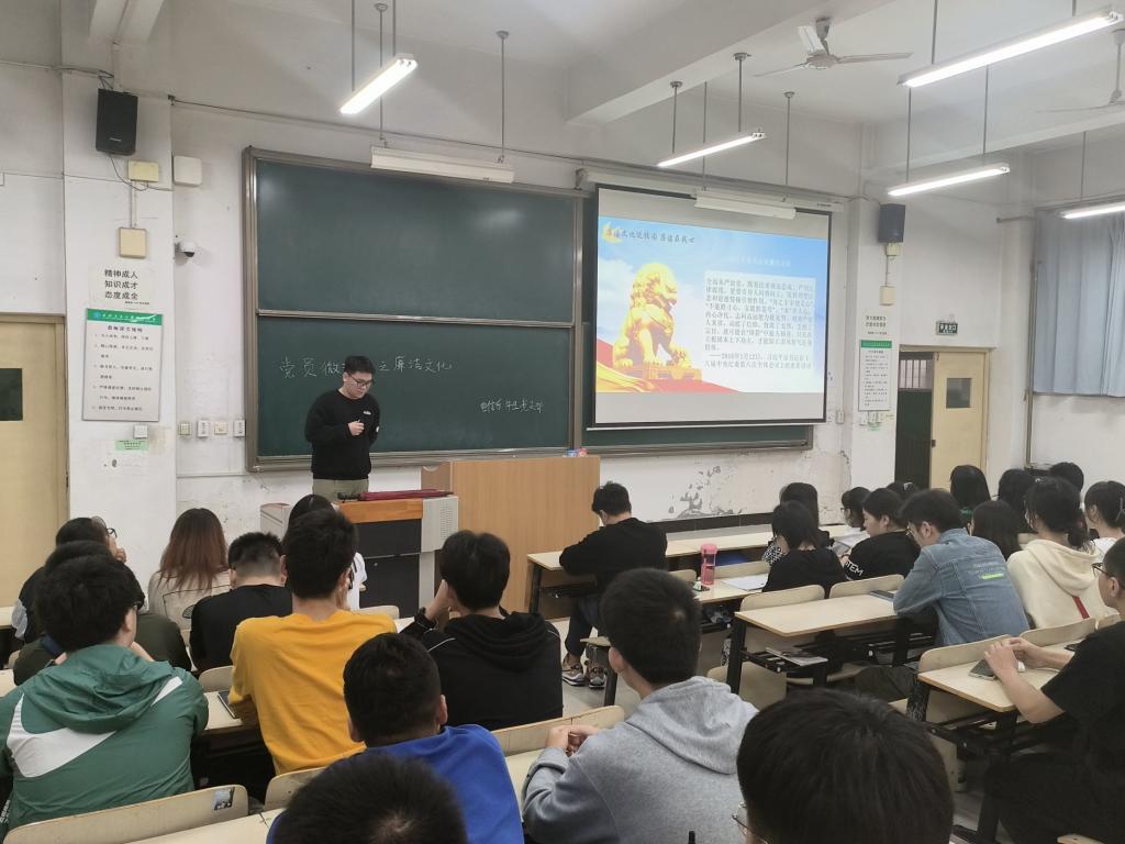 会议伊始,曹璐同志组织大家一起观看学习廉洁党课,并以“做一名廉洁的学生党员”为主题进行了宣讲,他认为学生党员在日常生活中一定要做到诚信考试不作弊、生活不铺张浪费等行为。接着,陈国豪同志以“廉洁在我心”作为主题进行了理论宣讲,他结合党的百年奋斗历史经验,认为当代大学生既要深入实践创新,但更要坚定初心使命,弘扬廉洁精神,做到‘廉洁在心中’。最后,李江硕同志以“如何做到一名廉洁自律党员”为主题进行宣讲,他谈到:“我们不仅要培养廉洁意识,树立廉洁的观念,也应该通过参与校园廉洁文化的实践以深化对廉洁理论的理解,并督促自己在日常生活中予以落实。”