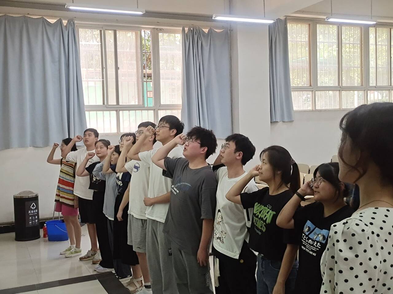 最后,在辅导员老师和大一、大二学生干部的见证下,党员“伴读团”全体成员进行了宣誓,并承诺积极遵守制度,以自身行动落实,积极发挥出学生党员的引领作用。
