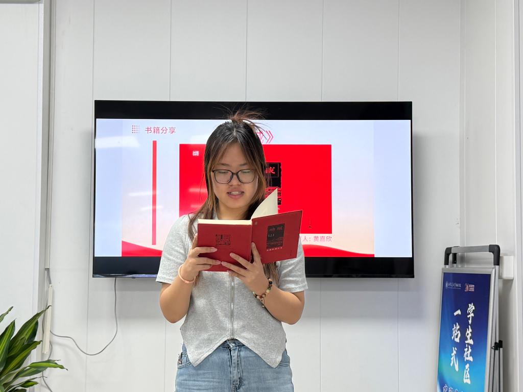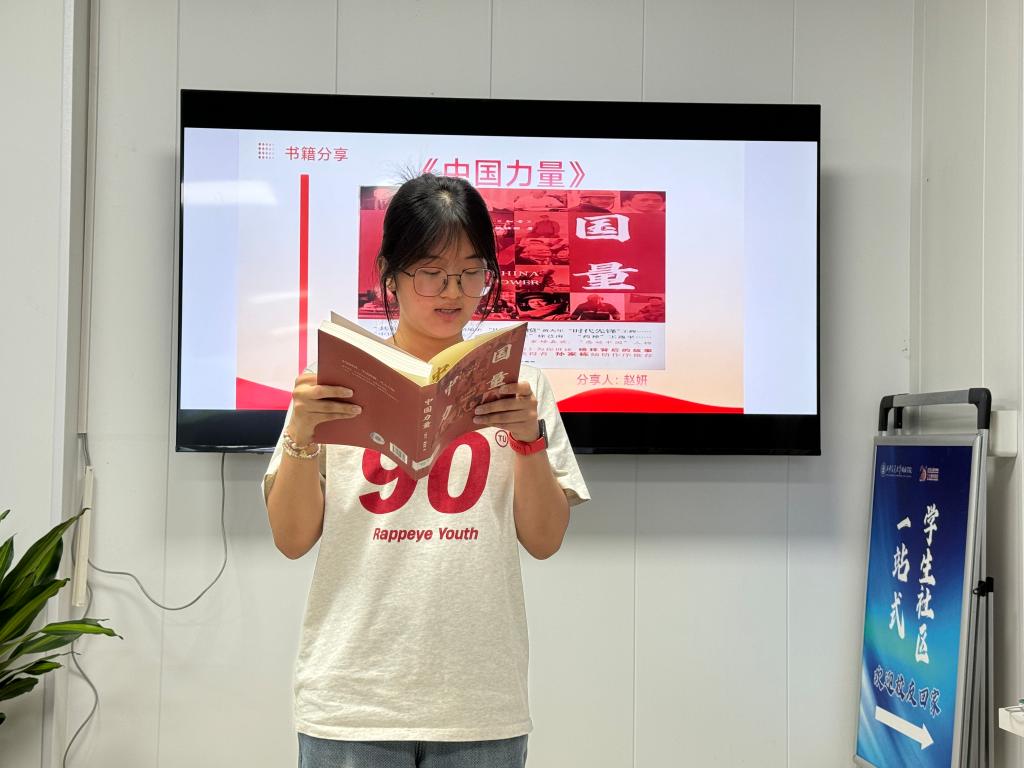 读书分享会伊始,由学生党员宋娅妮同学进行分享,她通过简要概述《觉醒年代》,再现了五四运动和中国共产党创建初期的波澜壮阔的历史画面。宋娅妮说:“书中的人物形象和革命故事让我感受到那个时代的激情和信仰。作为新时代的党员,我们要牢记历史,不忘初心,坚定理想信念,为实现中国梦而不懈奋斗”。随后,学生党员赵妍分享了《中国力量》这本书,讲述了中国在现代化建设中的辉煌成就和一线平凡英雄们的伟大精神。她分享道:“国家的强大源自每一个普通人的不懈努力,作为新时代的党员,我们也应在自己的岗位上发光发热,为祖国贡献力量”。接着,学生党员黄嘉欣带来了鲁迅的经典作品《呐喊》,她从书中几篇代表性的文章切入,深入剖析了鲁迅对社会问题的深刻思考和对民族觉醒的呼吁。黄嘉欣深有感触地说:“鲁迅的文字充满了力量,激励着我们面对困难时不屈不挠,勇敢发声,我们党员也要继承这种精神,在新时代担当起应有的责任和使命”。