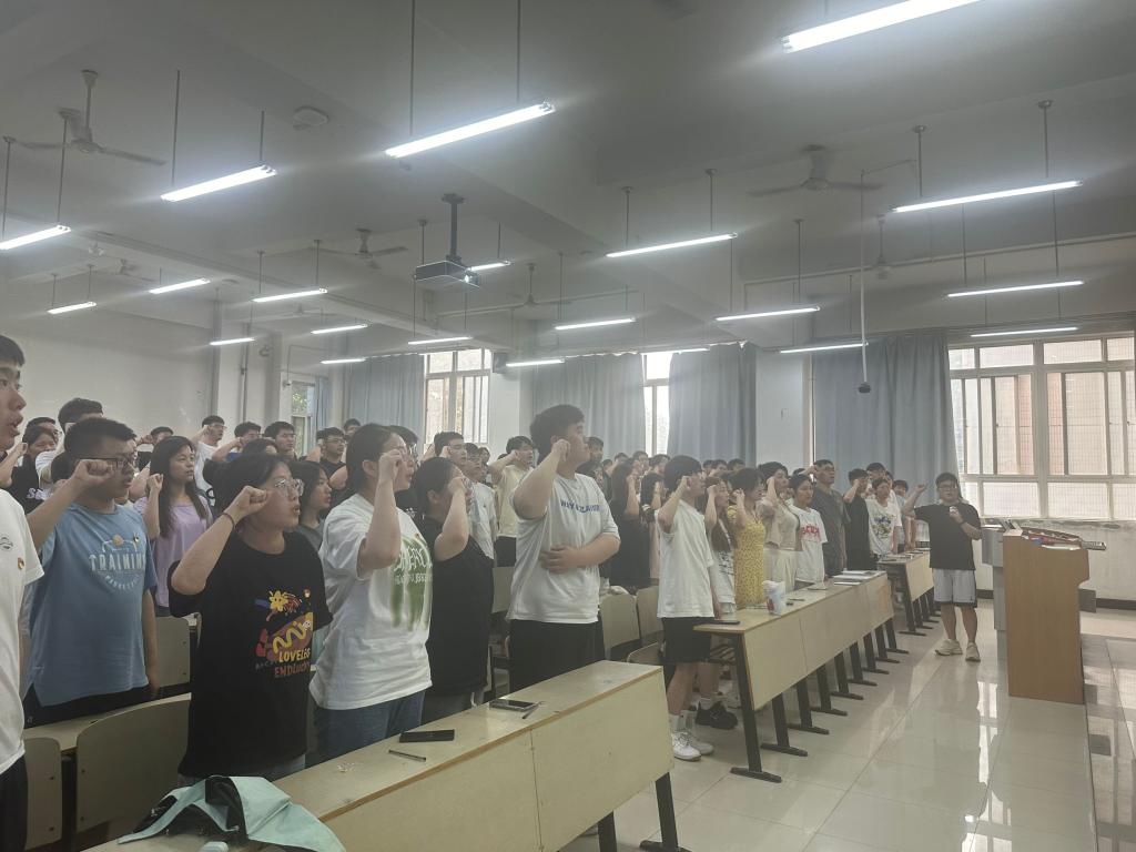 为进一步强化学生党员的党性教育,增强他们的使命担当意识,举行重温入党誓词仪式。每一位学生党员起立,举起右拳,铿锵有力的誓言回荡在教室的空气中,仿佛是对信仰的再次告白,对责任的再次承诺。这庄严的仪式不仅让学生党员回顾起当初的梦想与激情,更在他们心中深深植入了为共产主义事业奋斗终身的信念。