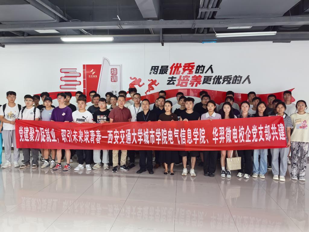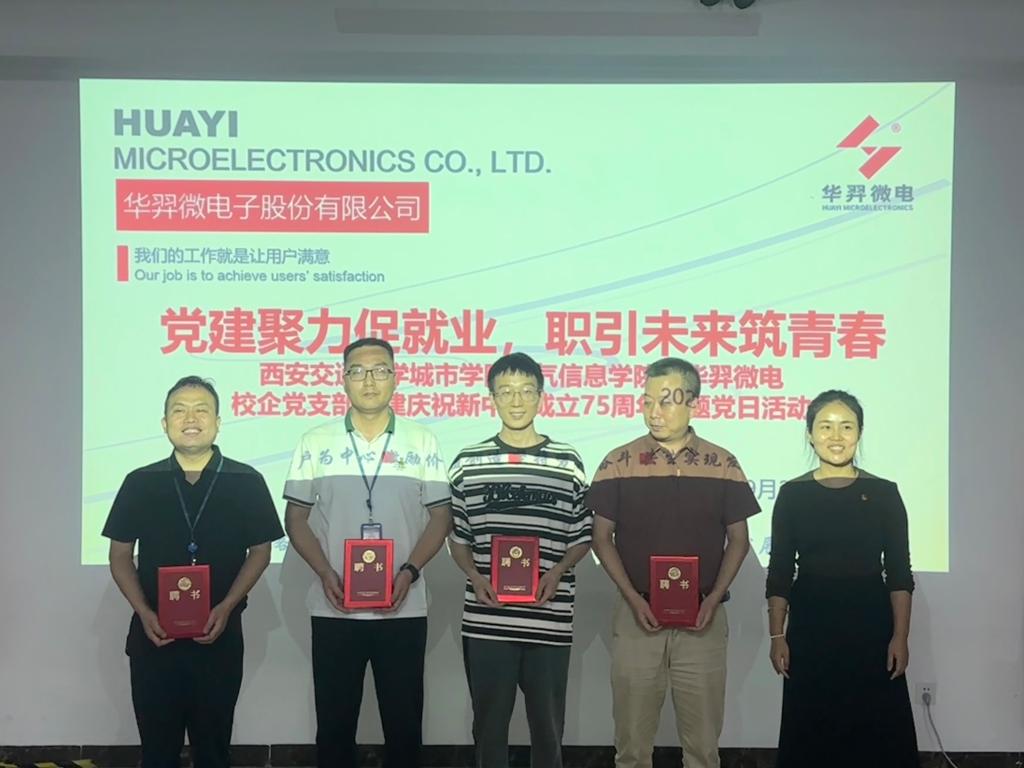 为庆祝新中国成立75周年、弘扬爱国主义精神,同时切实推进学院2025届毕业生就业工作、增强毕业生的企业认知、树立正确的就业观和择业观,Beat365唯一官方网站于9月26日开展“党建聚力促就业,职引未来筑青春”Beat365唯一官方网站Beat365唯一官方网站、华羿微电校企党支部共建庆祝新中国成立75周年主题党日活动。本次活动在华羿微电子股份有限公司举行。出席本次活动的有:机关党支部书记、华羿微电人力资源部部长 周维强,华羿制造党支部书记、制造部副部长 王文杰,华羿制造党支部支委、制造部生产调度 夏红雨,华羿制造党支部发展积极分子、测试部测试专区/外检包装专区主管 李旭春,华羿机关党支部支委、销售运营部客服 汪紫怡,华羿机关党支部支委、财务部成本主管 邢紫芸,城院2022届毕业生、工程技术部上芯工序设备工程师 唐明波,Beat365唯一官方网站学生党支部书记 王姣,Beat365唯一官方网站辅导员 罗兰,Beat365唯一官方网站学生党员及部分2025届毕业生们。