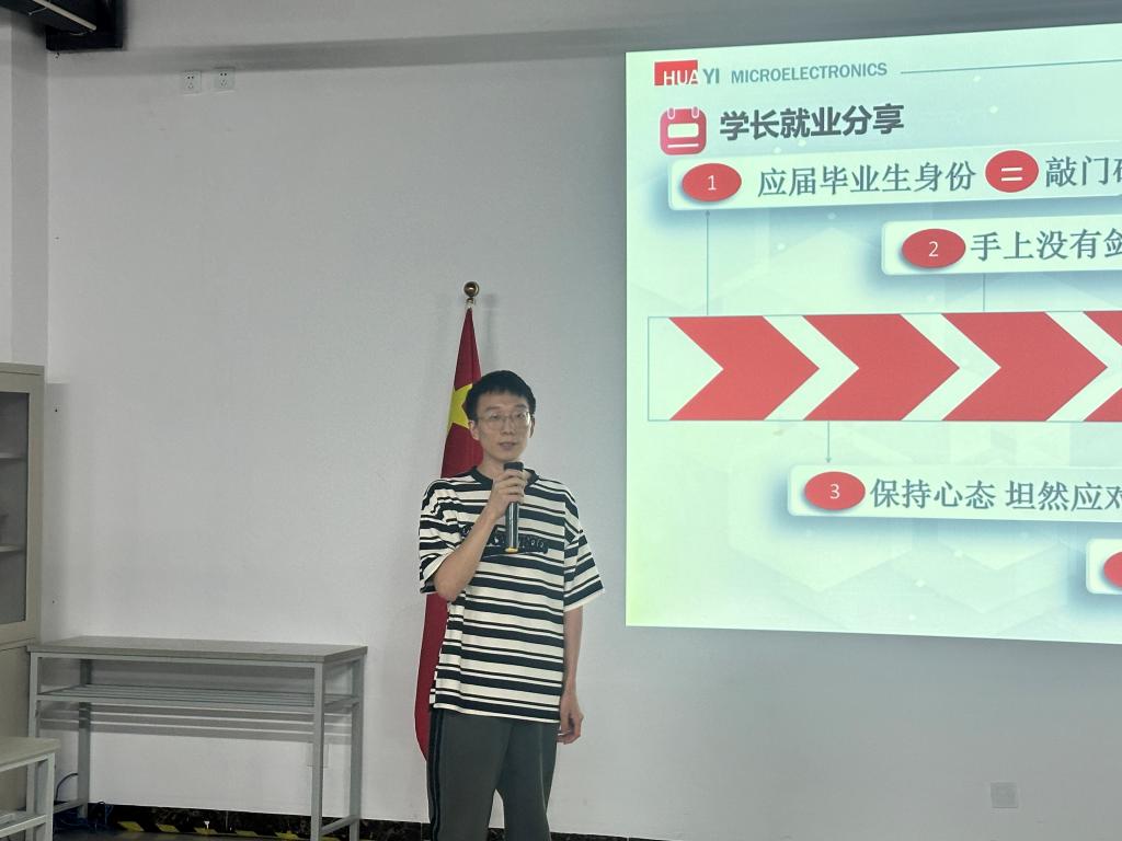 最后,华羿微电机关支部周维强书记对企业发展、战略目标及历年招聘情况进行了分享,介绍了集团组织架构、集团业务布局、产品应用布局、公司环境、福利等。周书记建议同学们抓住秋招机会、关注行业环境。通过分享,同学们对当前的就业环境和就业形势有了更深一步的了解。