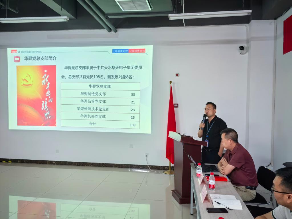 随后由华羿微电制造支部王文杰书记对华羿党总支部进行介绍,着重讲述了党支部特色活动包括红色教育情况、志愿活动情况等。