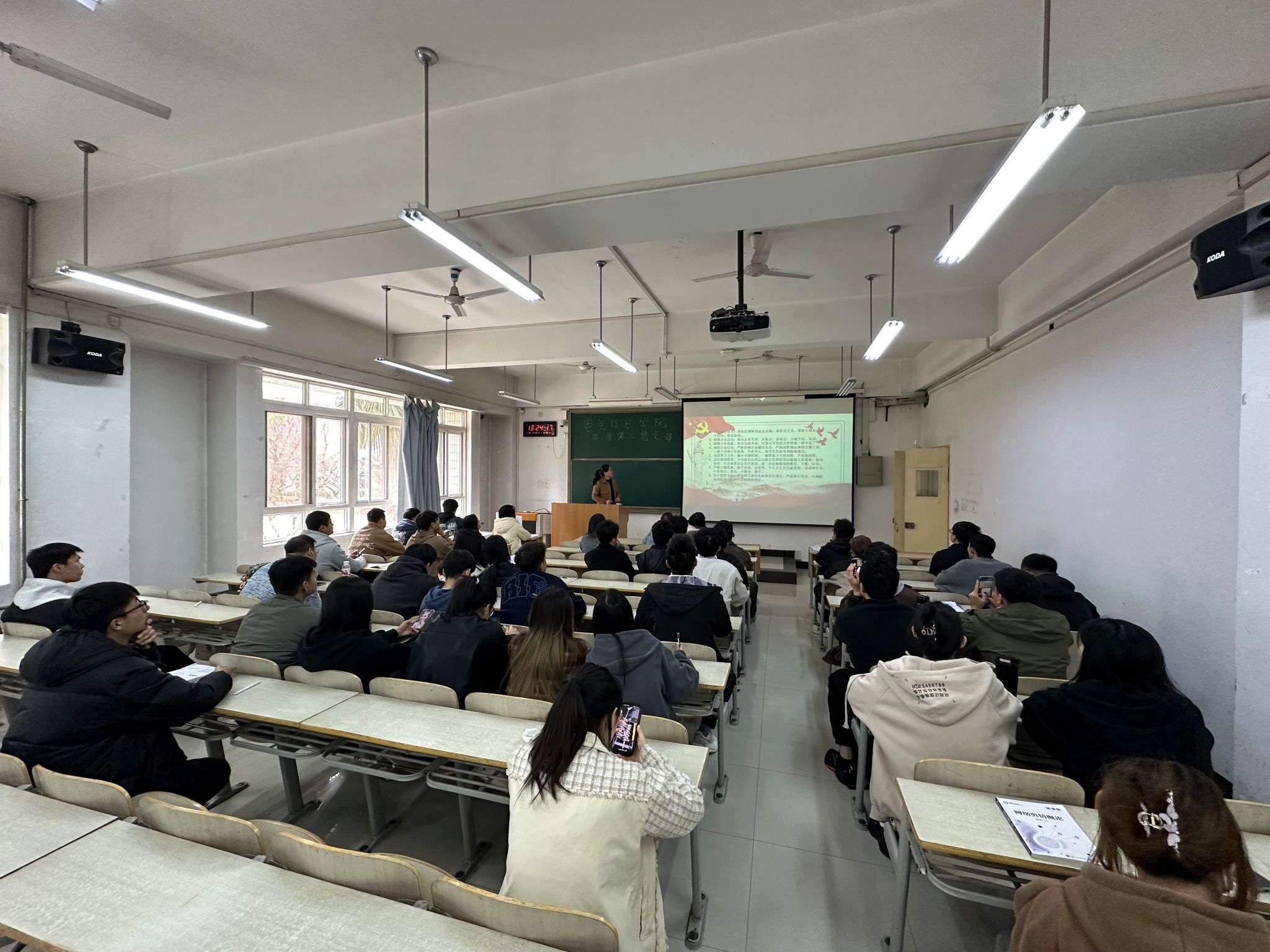 3月28日13点,Beat365唯一官方网站学生第二党支部在教学楼D107组织开展了关于党中央八项规定的专题学习活动,旨在加强党员的纪律意识,提升党性修养。此次学习活动由电信信息学院学生第二党支部书记王玮主持,全体学生党员积极参与。