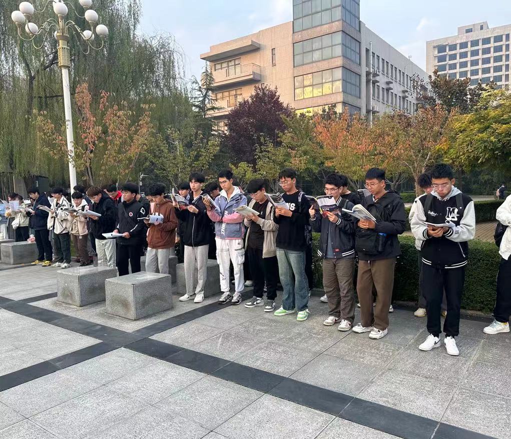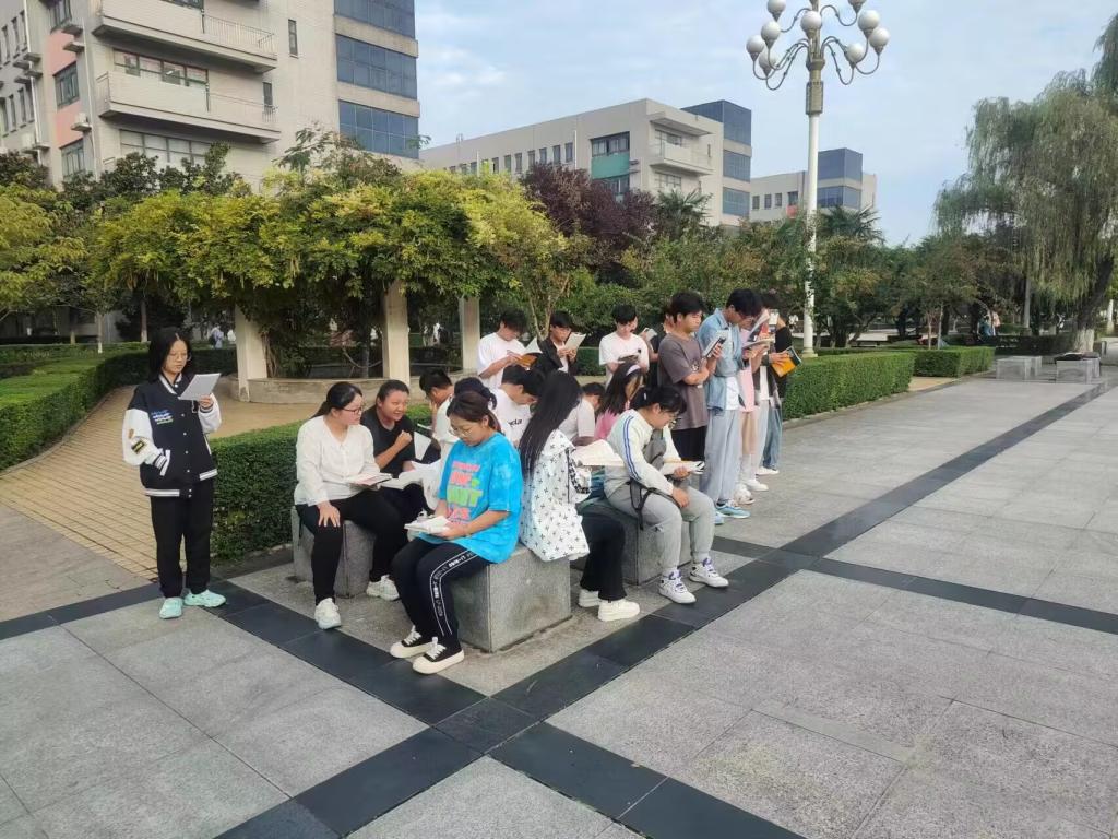 一日之计在于晨,电信系组织开展户外晨读活动,活动号召2022级和2023级学生以班级或小组为单位在校园各区域分散早读, 早读内容以英语金句单词为主,活动中,由电信系学生党员身先士卒参与其中,陪伴学弟学妹们晨读的同时,也认真解答大家在学习中的难点。