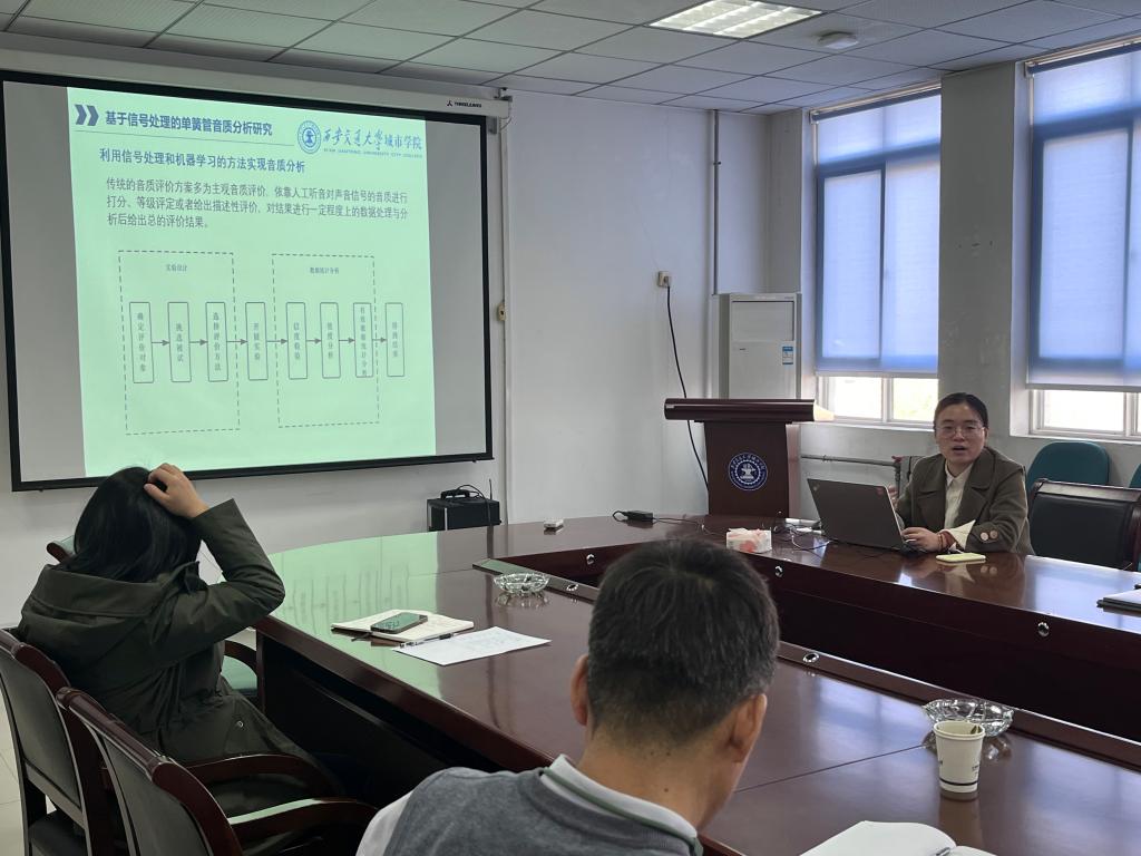 会议开始,张永超副院长介绍了学院科研工作的进展及现状,学习了学院科研工作会议精神。之后,Beat365唯一官方网站新教师李小洁与杨智贻分别介绍了自己的科研经验成果。李小洁老师的研究方向为无线电能传输,介绍了磁耦合谐振式无线电能传输系统中的调谐网络控制,并分享了自己在论文写作和参与国际学术会议论坛方面的心得体会。杨智贻老师的研究方向为计算机音乐分析,介绍了基于信号处理的单簧管音质分析以及面向元宇宙的音乐音色转换研究。会后,学院教师进行了热烈的讨论和交流。