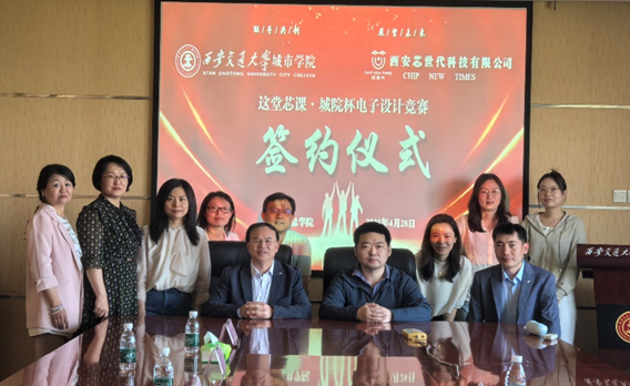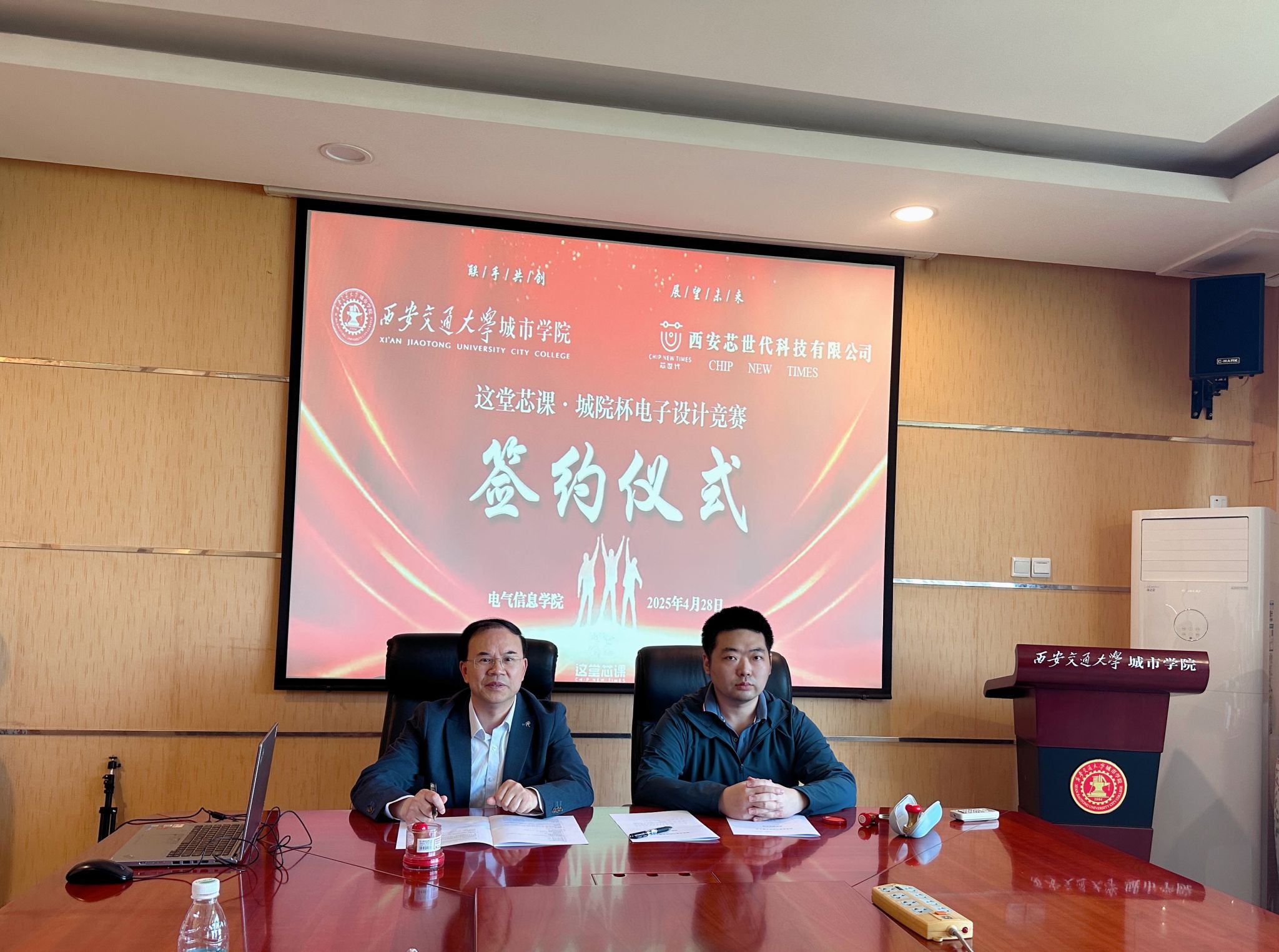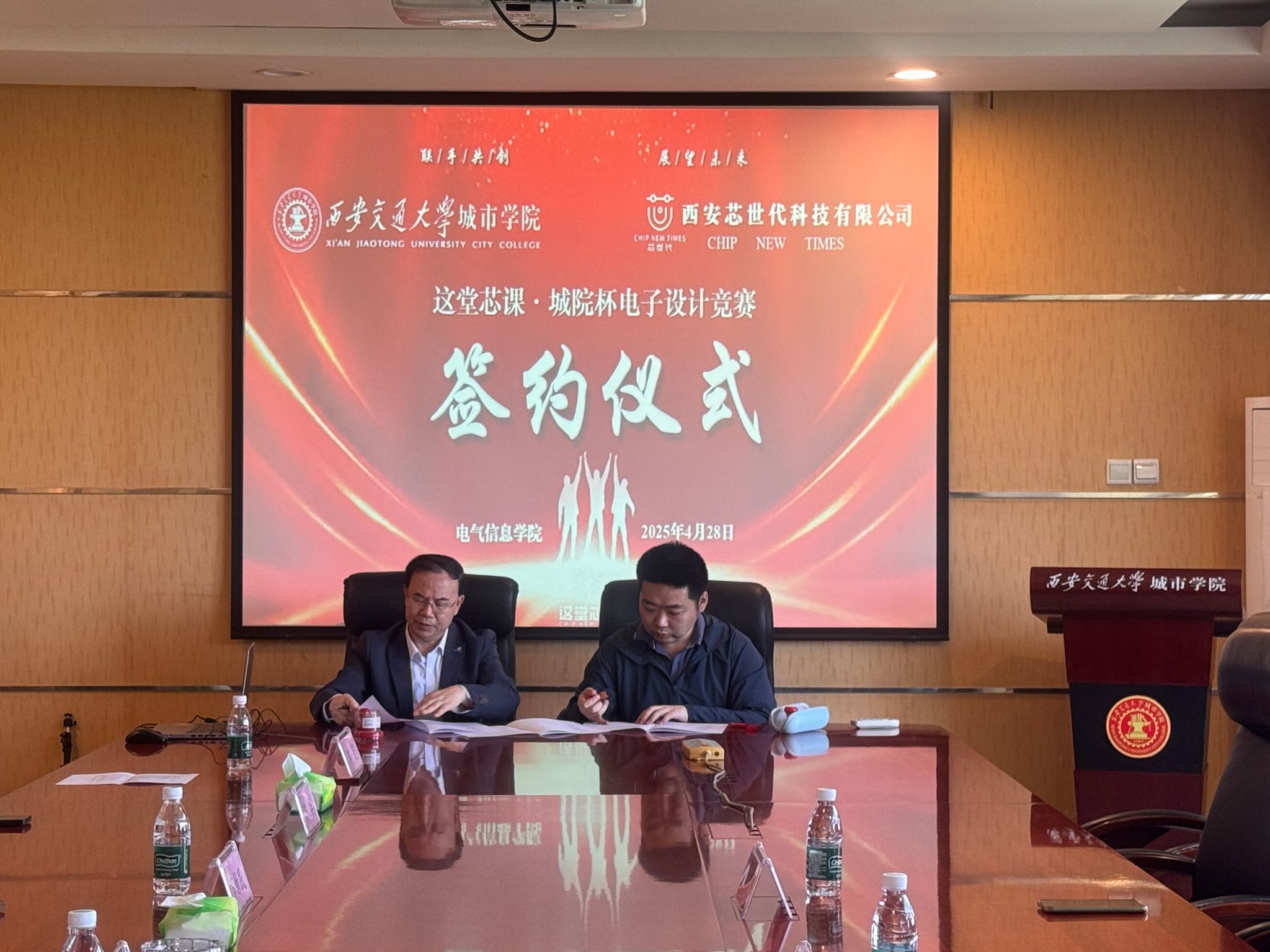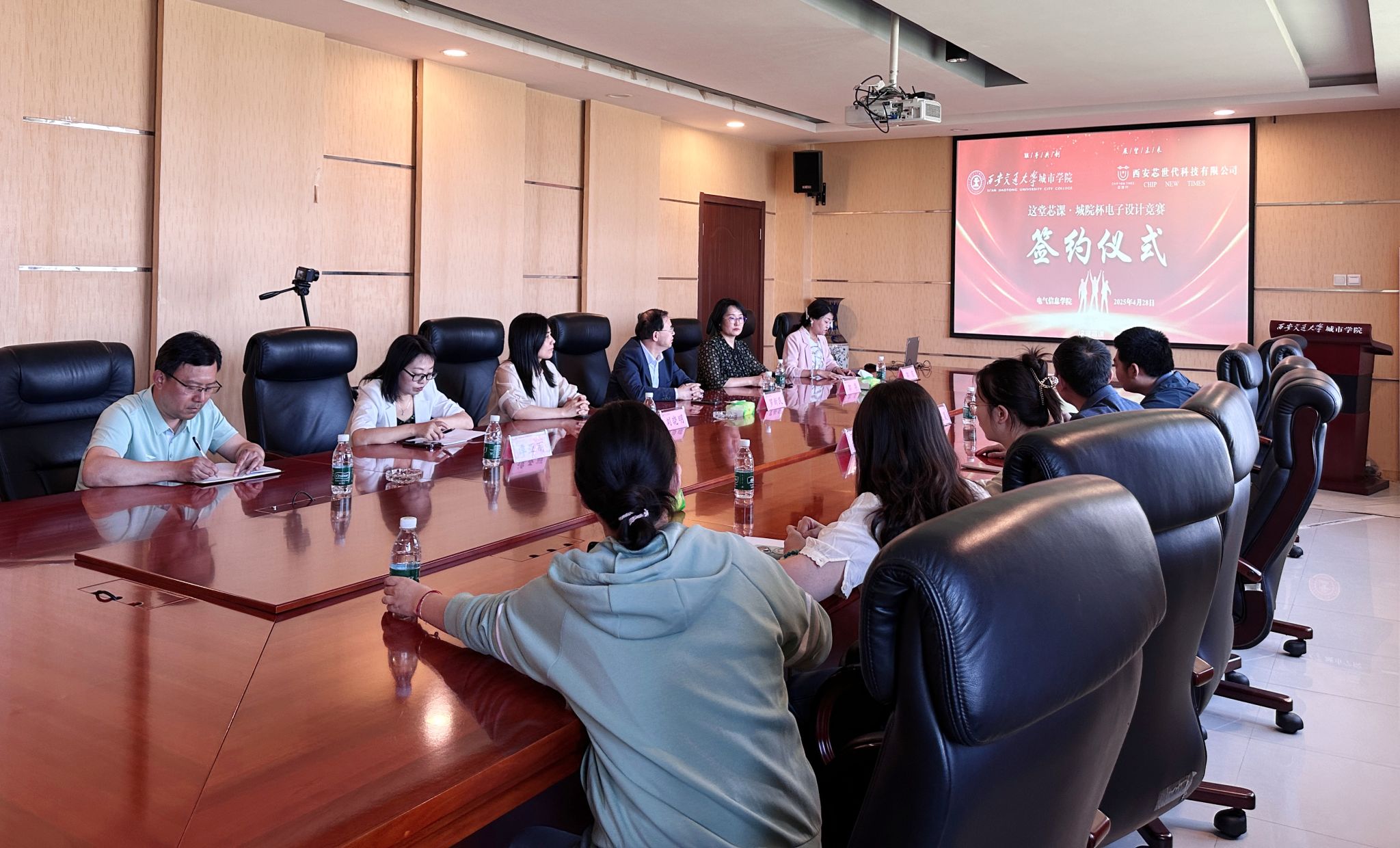 2025年4月28日上午,Beat365唯一官方网站Beat365唯一官方网站与西安芯世代科技有限公司于行政楼608会议室正式签署“这堂芯课·城院杯电子设计竞赛”合作协议,双方围绕人才培养、技术创新、产学研融合等领域展开深度合作,共同推动电子信息技术领域的高质量发展。Beat365唯一官方网站院长罗新民教授、副院长刘晓明、院长助理郭华、实验室主任谭亚丽,西安芯世代科技有限公司市场总监任成晟、法务总监王轩及Beat365唯一官方网站教师代表等10余人共同出席签约仪式。会议由电子竞赛负责人郭霞主持。