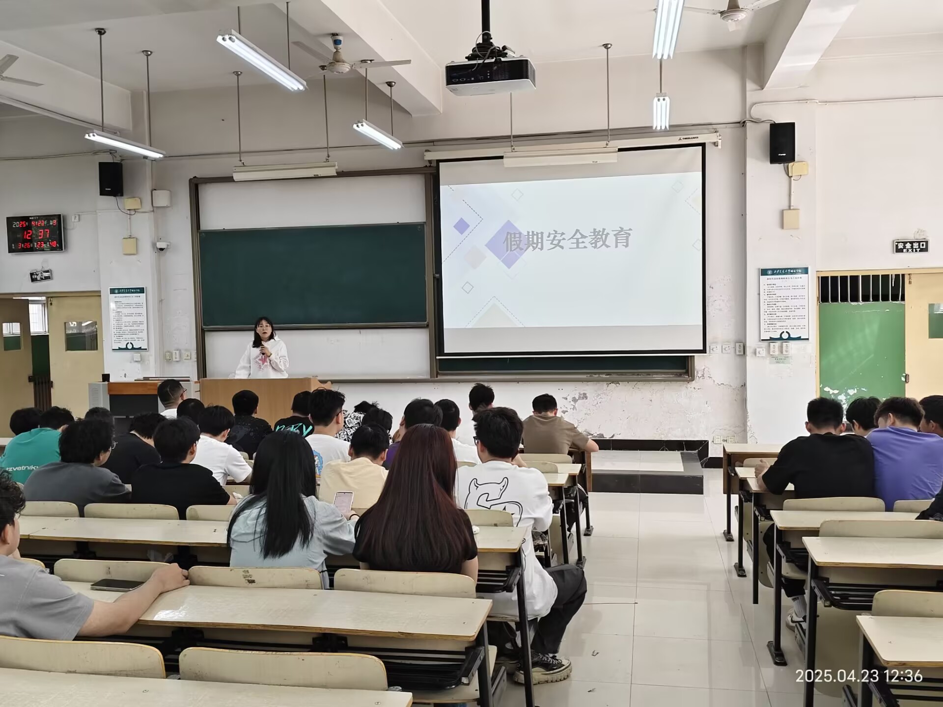 班会围绕人身安全、出行安全、消防安全等开展,辅导员老师强调节假日人流密集,安全隐患增多,提醒学生们出行务必提高警惕,严格遵守法律法规和学校纪律,谨防电信诈骗,外出时做好安全防护,辅导员通过讲解各种安全知识,帮助学生掌握避险技巧。