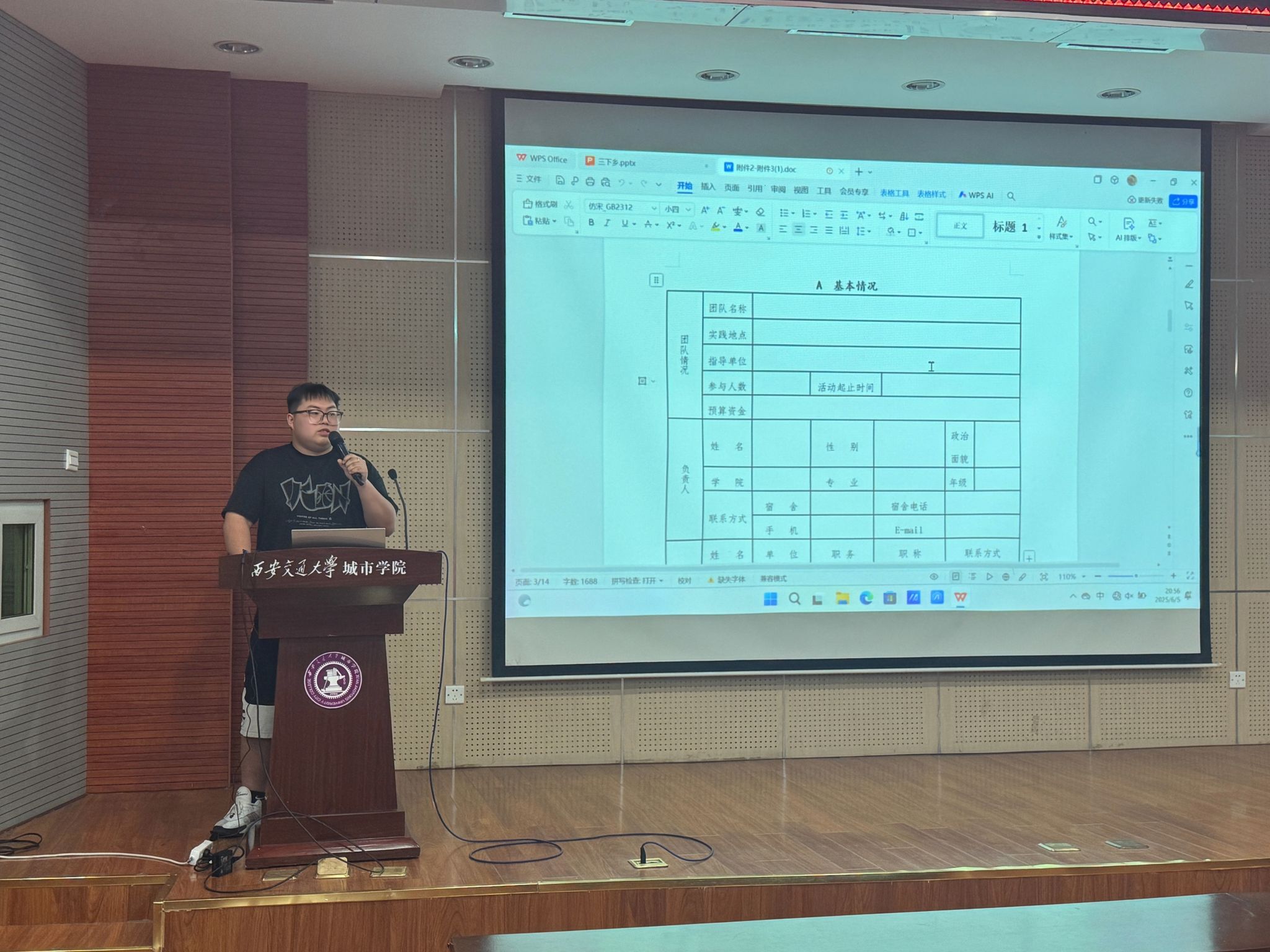 在经验分享环节,曾参与过往届三下乡活动的学生代表陈坤走上讲台,结合自身经历,为即将出发的队员们倾囊相授。他们分享了在2024年暑期红色研学的经历,讲述了在过程中如何克服困难、深度探索感悟,以及在采访中怎样激发被采访群众的参与热情。这些生动鲜活的经验,不仅为新队员们提供了实用的技巧,更让大家感受到了三下乡活动的独特魅力与非凡意义。