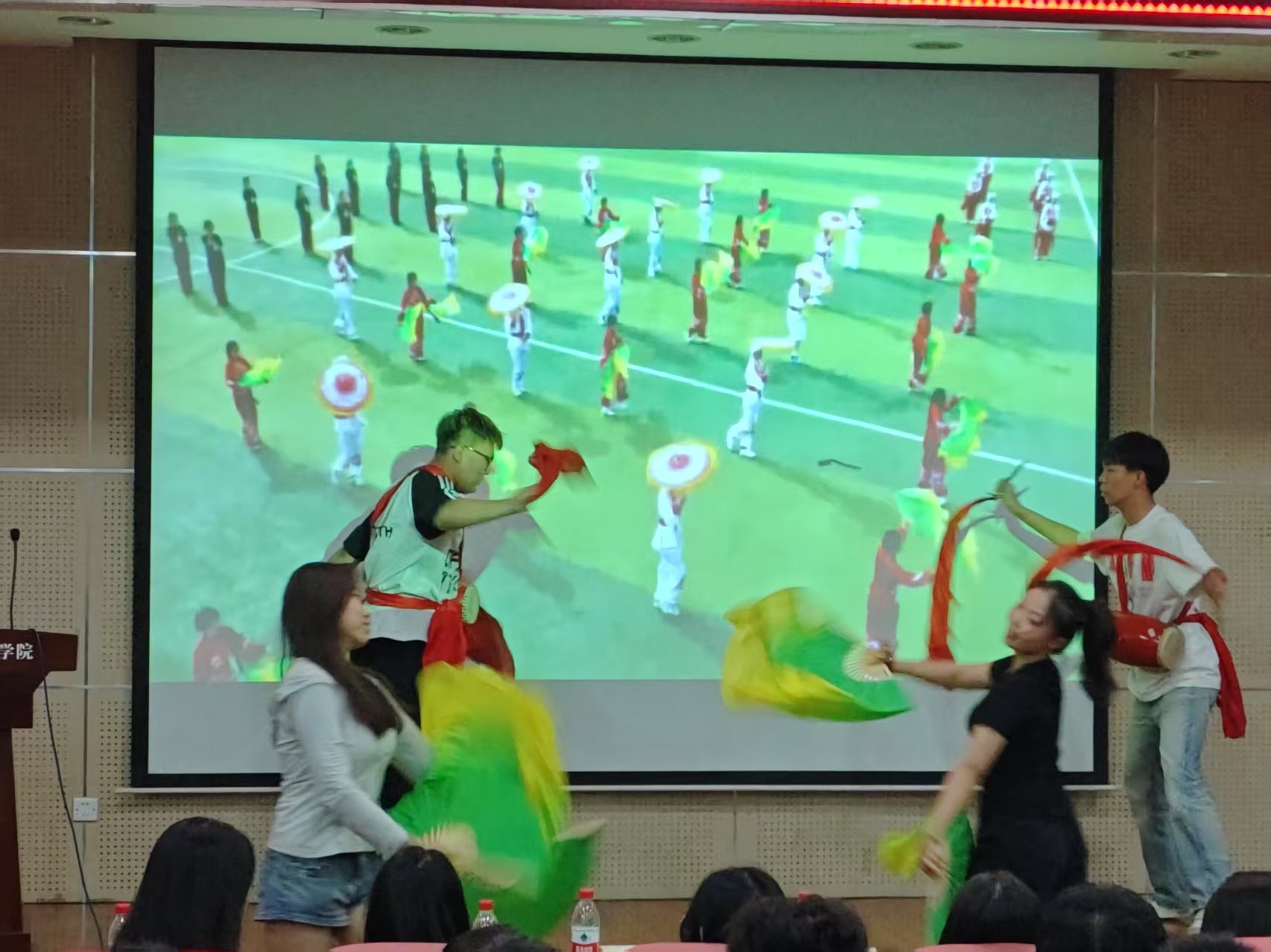 活动伊始,电气24级学生汪佳琦同学以《解码窑洞灯火点燃青春信仰》为主题带来了一场生动的思政微课分享,深入浅出地阐述了延安精神的时代内涵,激励同学们坚定理想信念,树立为人民服务的意识。随后,精彩的腰鼓表演点燃了现场氛围,铿锵有力的鼓点传递着革命年代的豪情壮志。在腰鼓学习环节,老师和学生们亲身参与,感受传统文化的魅力,体悟红色精神的力量。