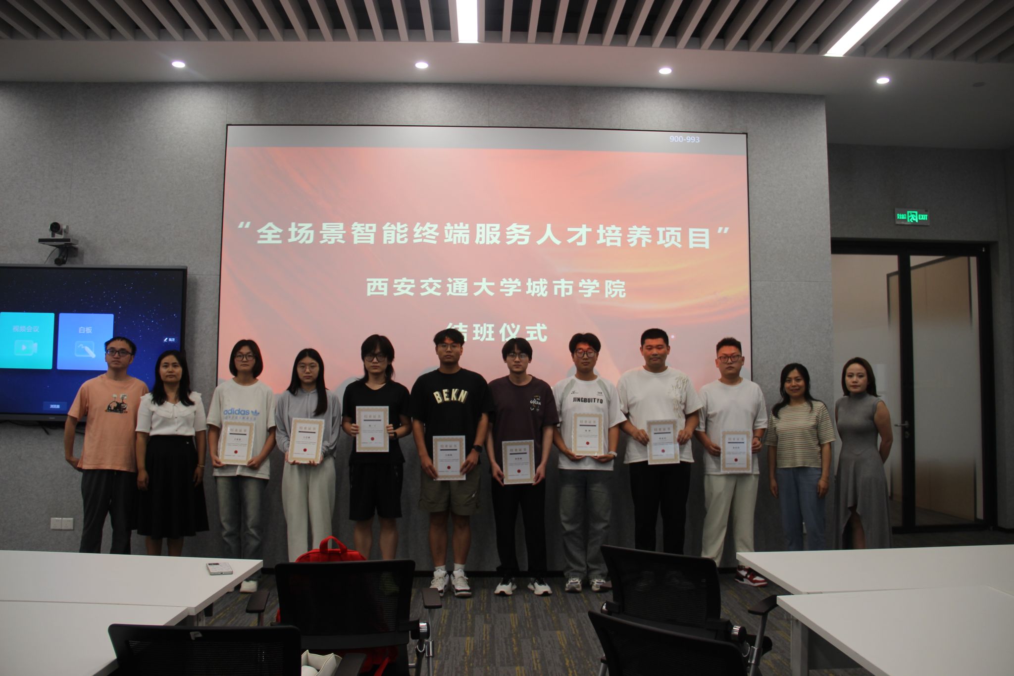 在考试结束后,项目举行了结业仪式。仪式上为全体合格学员颁发了结业证书,并对表现优异的学员授予了“优秀学员”荣誉证书。全体参与人员合影留念,为此次充实的校外实训画上了圆满的句号。
