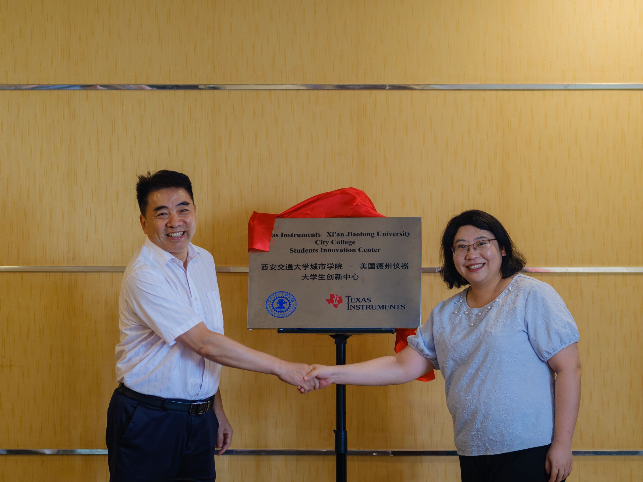 随后,罗新民部长接收了TI公司捐赠的开发套件,朱校长与TI公司代表为大学生创新中心揭牌。